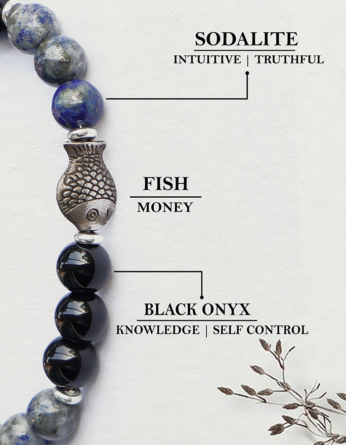 Black Onyx and Sodalite Fish Natural Stone Bracelet