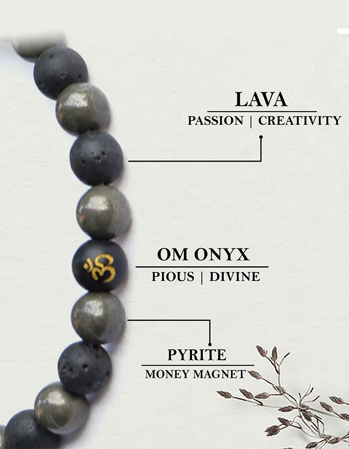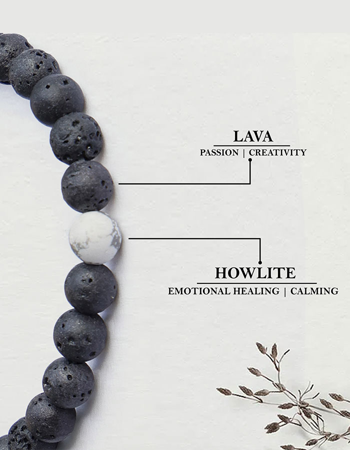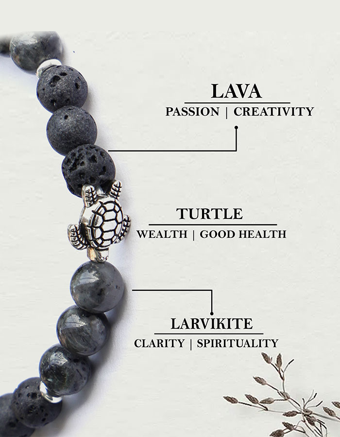 Lava and Larvikite Natural Stone Bracelet with Turtle