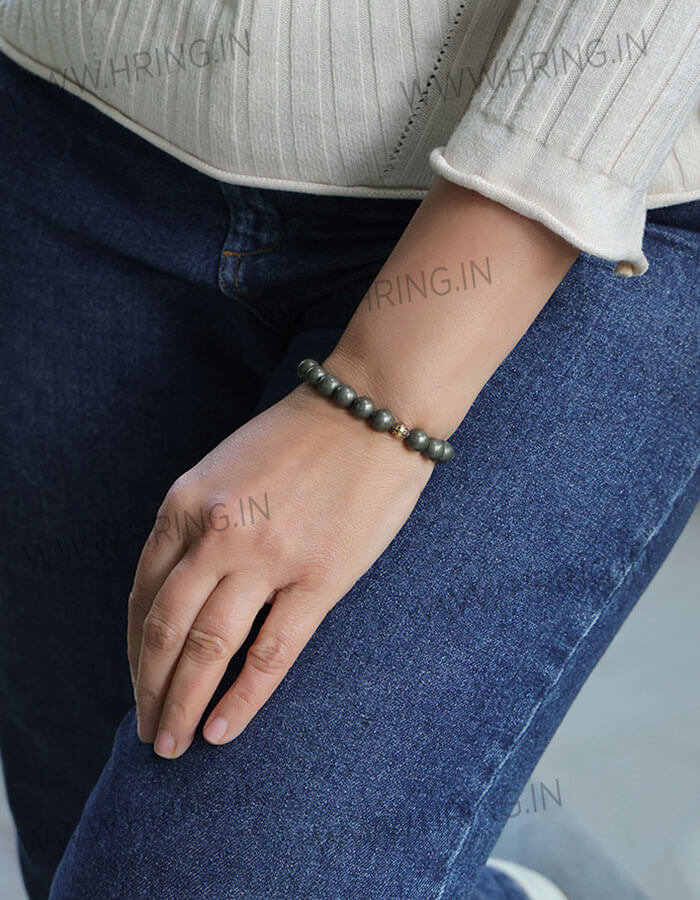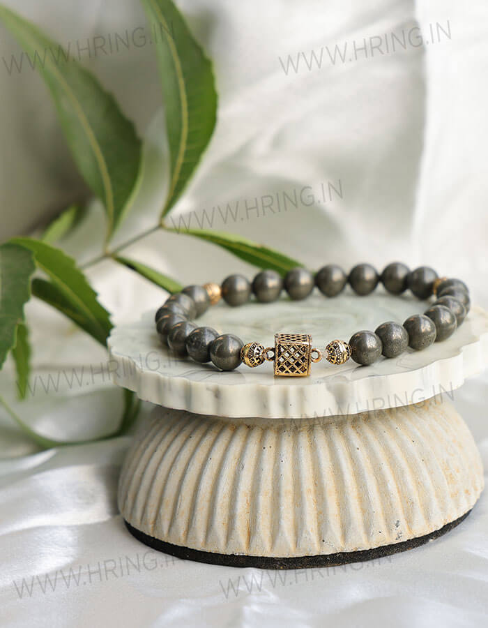 The metallic sheen of Pyrite exudes confidence and sophistication, making this bracelet a stylish and meaningful addition to your daily wear. Its timeless design blends effortlessly with both casual and formal attire.